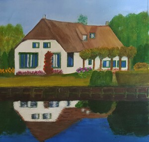 2020Deze mooie boerderij kwam ik zomaar tegen. Dubbel plezier door de weerspiegeling