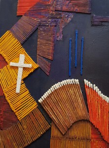 2017getroffen door de uitvoering in Leeuwarden. Het geheel is gemaakt met lucifers wat voor het houten kruis staat.