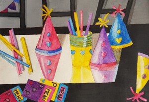 2021gewoon gezellig. Aquarel met oostindische inkt